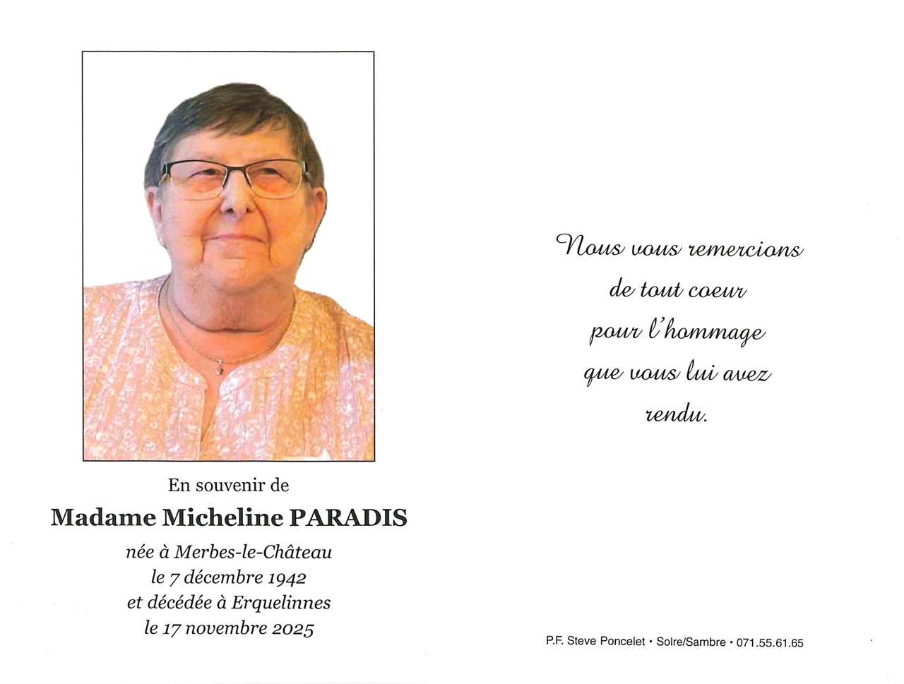 Madame Micheline PARADIS