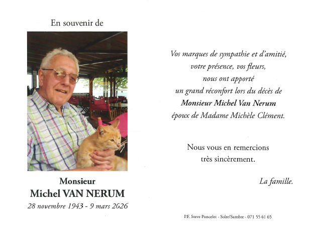 Décédé à Erquelinnes (6560) le lundi 9 mars 2026 à l'âge de 82 ans